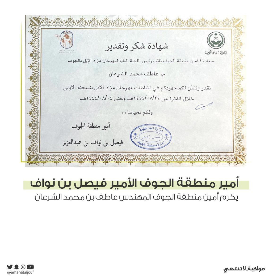 أمير منطقة الجوف يثمن جهود الأمانة في نجاح مزاد الإبل الاول بالجوف